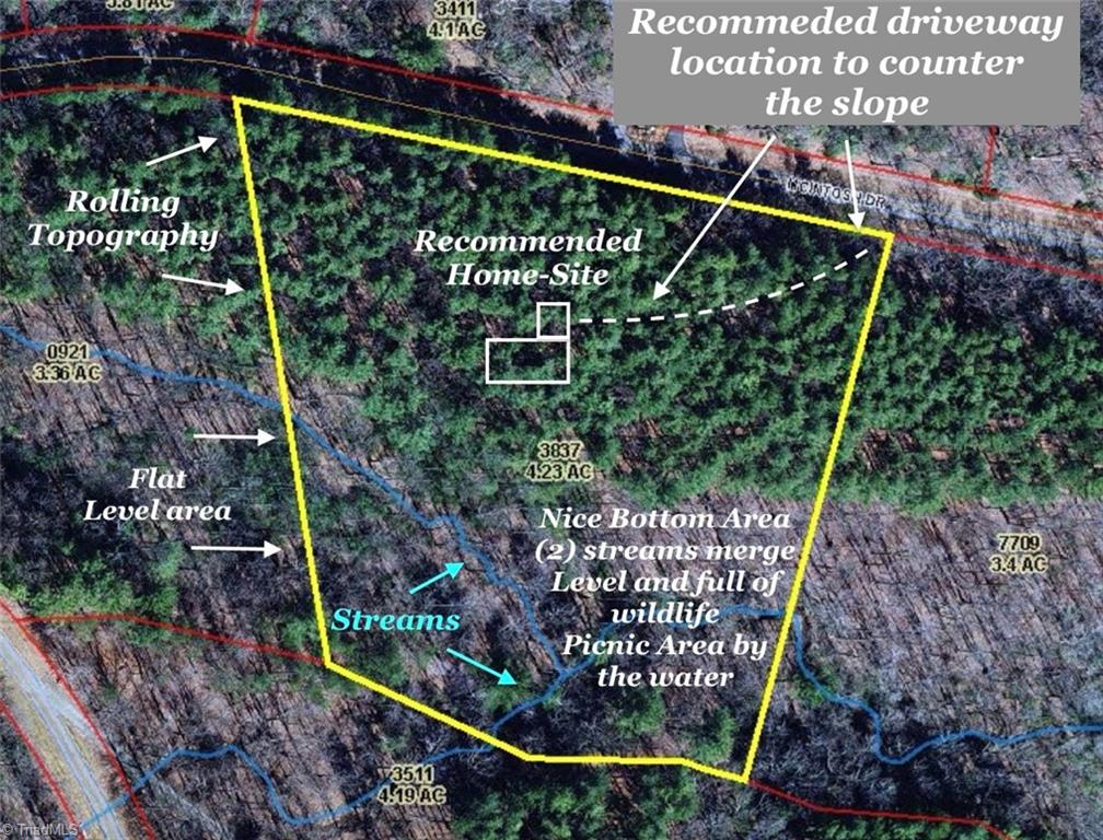 4.23 Acres in Exclusive Orchard Mountain! Over 600 Acres with 100 home sites ranging from 2 to 5 acres. Nestled in the Blue Ridge Mountains and conveniently located between Mt Airy NC & Galax VA. Includes: clubhouse, swimming pool, tennis / basketball courts, volleyball court, Horseshoe pits, walking trails, 4 ponds with plenty of fishing. Gorgeous homes sites &Gated entrance! This parcel has a gorgeous homesite overlooking a flat bottom area with (2) streams full of wildlife. Call today! Gated Entrance requires appointments to view the property.