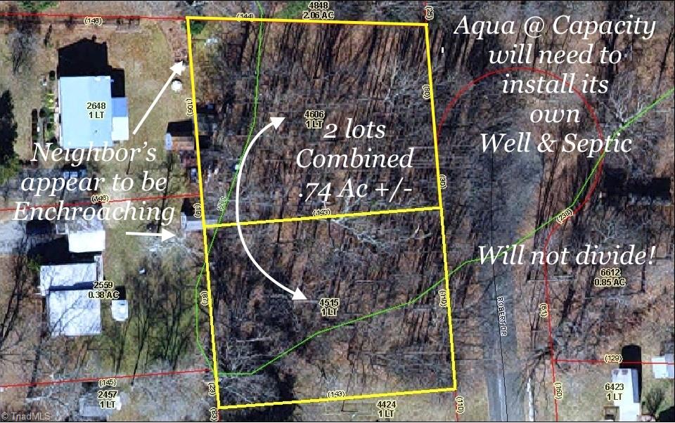 Two lots combined as one – approx .74 acres total. Aqua water is nearby but has reached capacity. Buyer will need to install a well & septic.